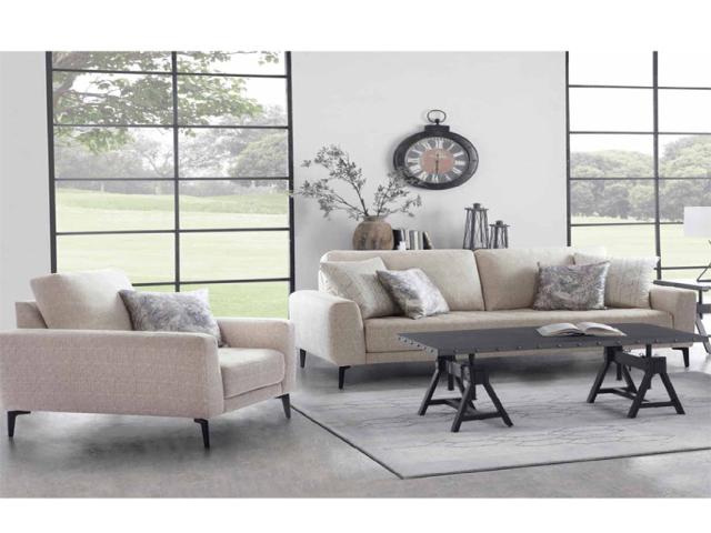 Elevate your living room with our high quality Portland sofa series that offers plenty of spacious room. Covered with rich fabric, the seating floats on a platform that is thin and sturdy to give Portland a lavish look.