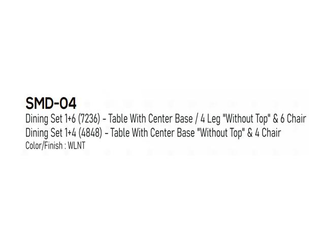 More Information Dining set-1+4(4848) - Table with center Base "Without Top" & 4 Chair, Color/Finish : WLNT