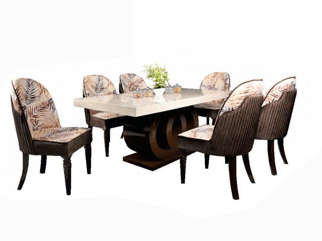 Product Details Dining set-1+6(7236) - Table with center Base / 4 Leg "Without Top" & 6 Chair