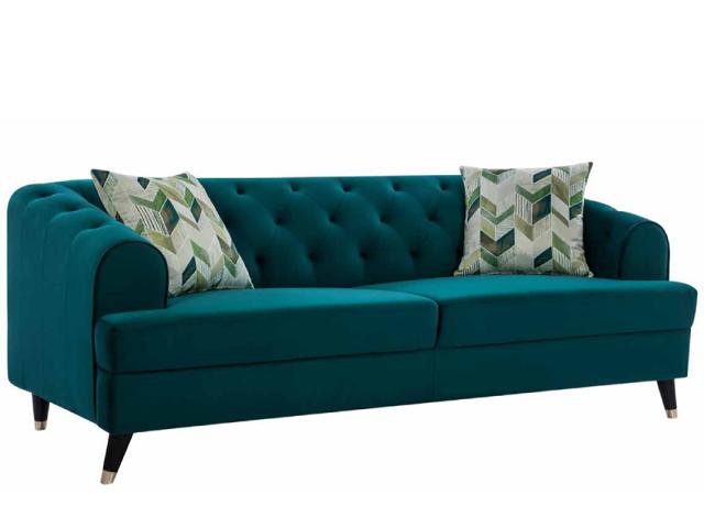 Our Dothan sofas presents a luxurious look with tufted cushions and gently curved armrests.They present a refined look with tapered wooden legs and delicate gold trimmings.
