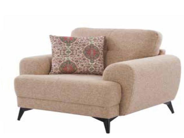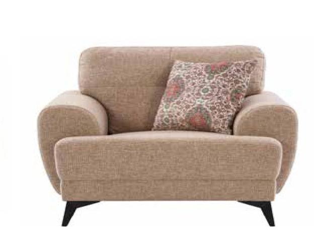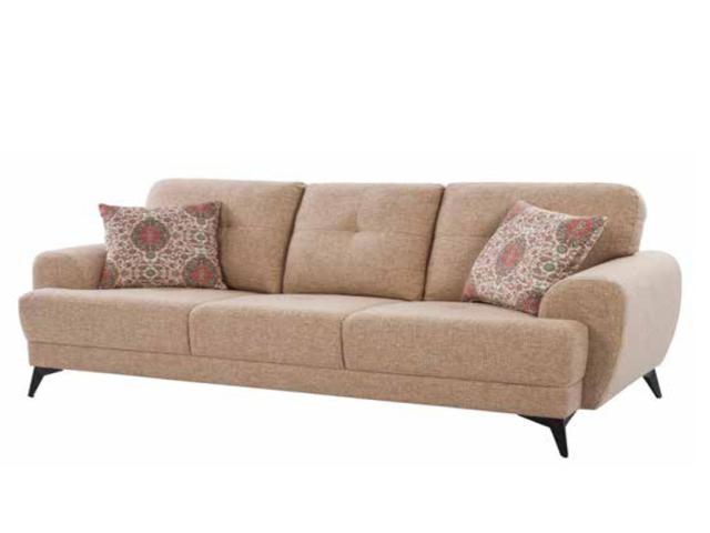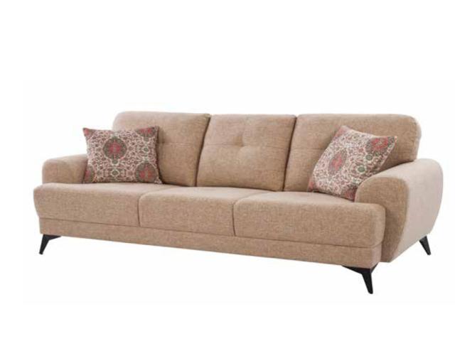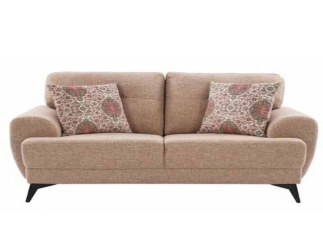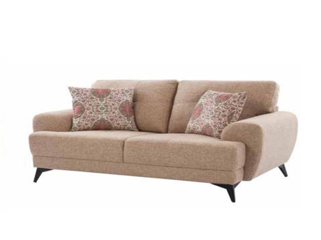 Warmth is added to modern interiors by the creamy, neutral color scheme. Our Glasgow couch, which is upholstered in a rosy beige top-grain fabric, pairs robust wooden legs with plush cushioned seats.